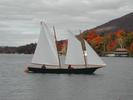 ![]() Light winds Yeah, I know, I've got the main throat halyard a little slack. |