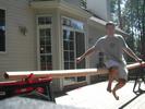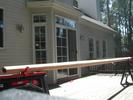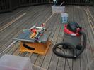 ![]() Backyard Sawmill I cut the staves for the mast on the back deck -- I made a LOT of sawdust -- 16 feet times 3 cuts (1 for width plus 2 for the notch) times 8 staves, plus 4 feet of taper per mast is over 400 feet of cuts. Times 2 masts! |
